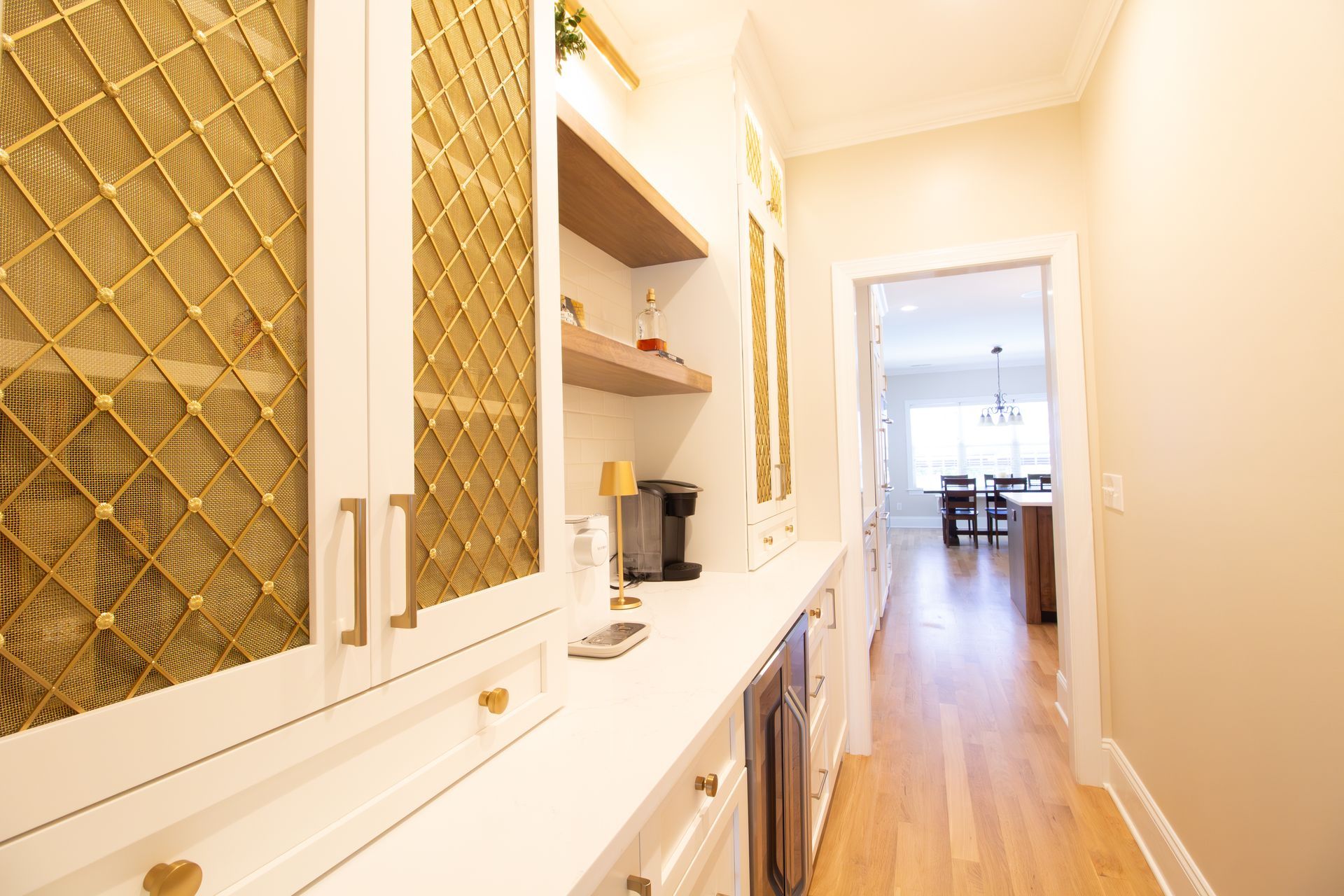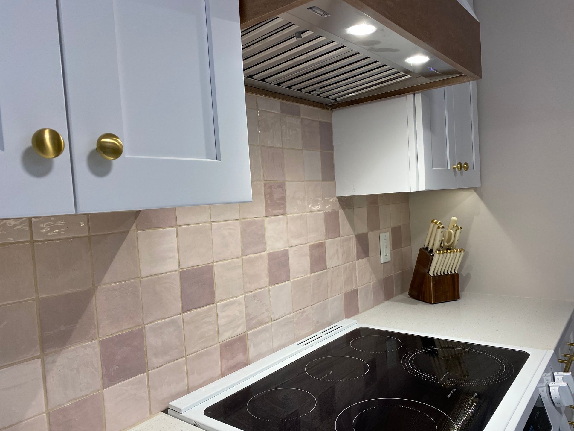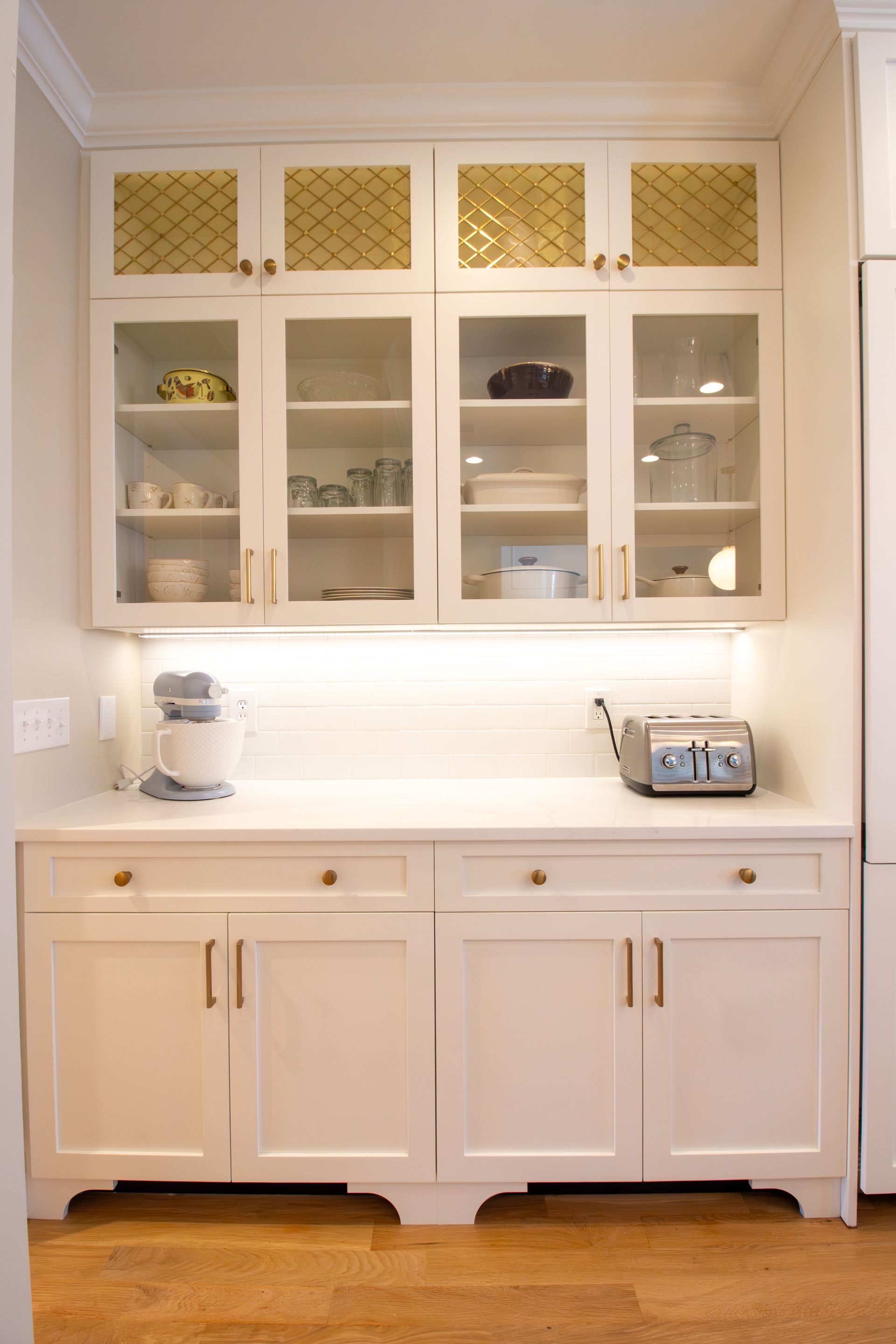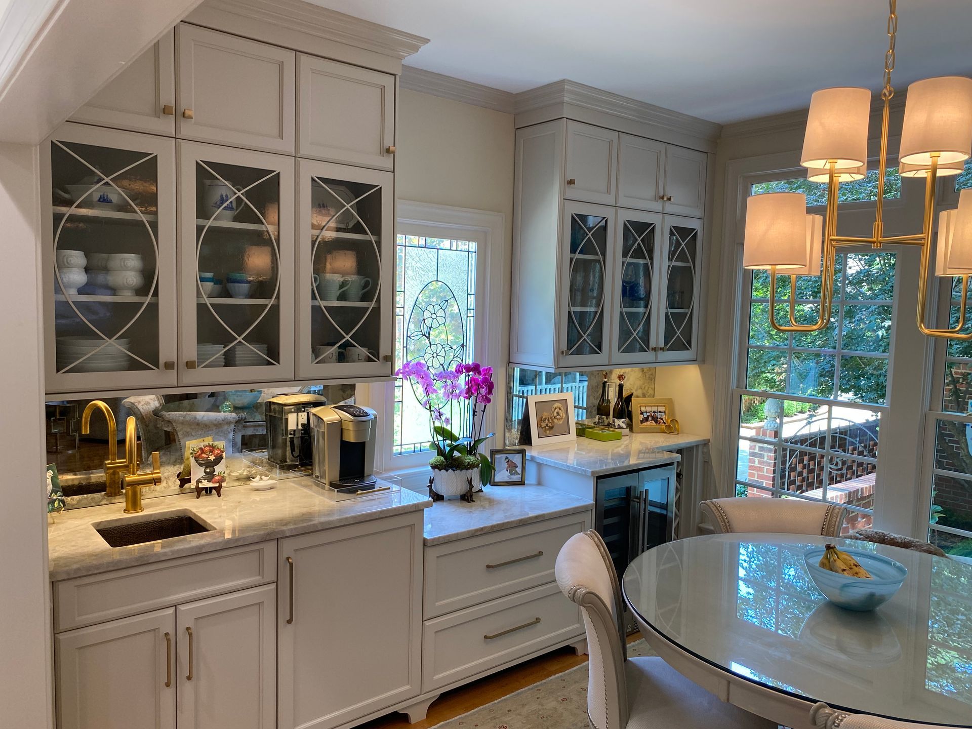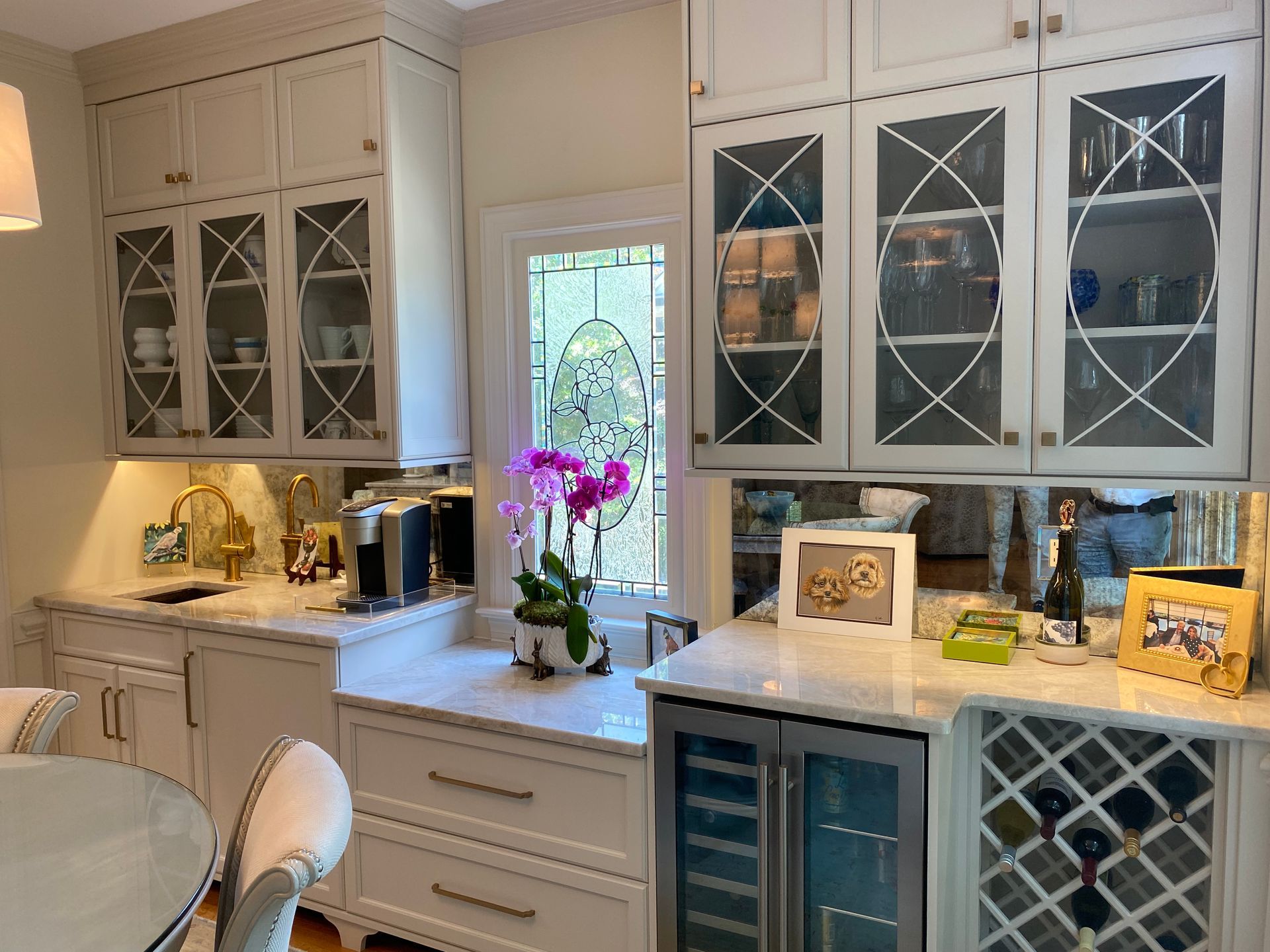 - Calcutta gold marble with gold leaf mosaic accent wall