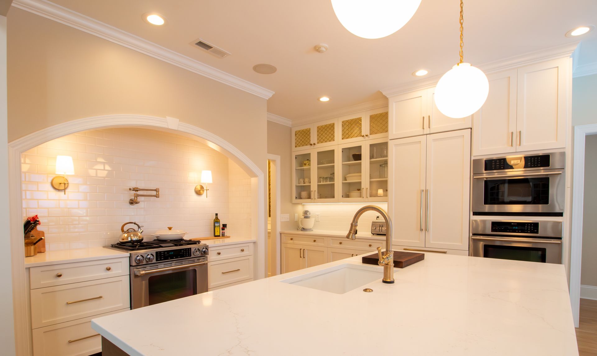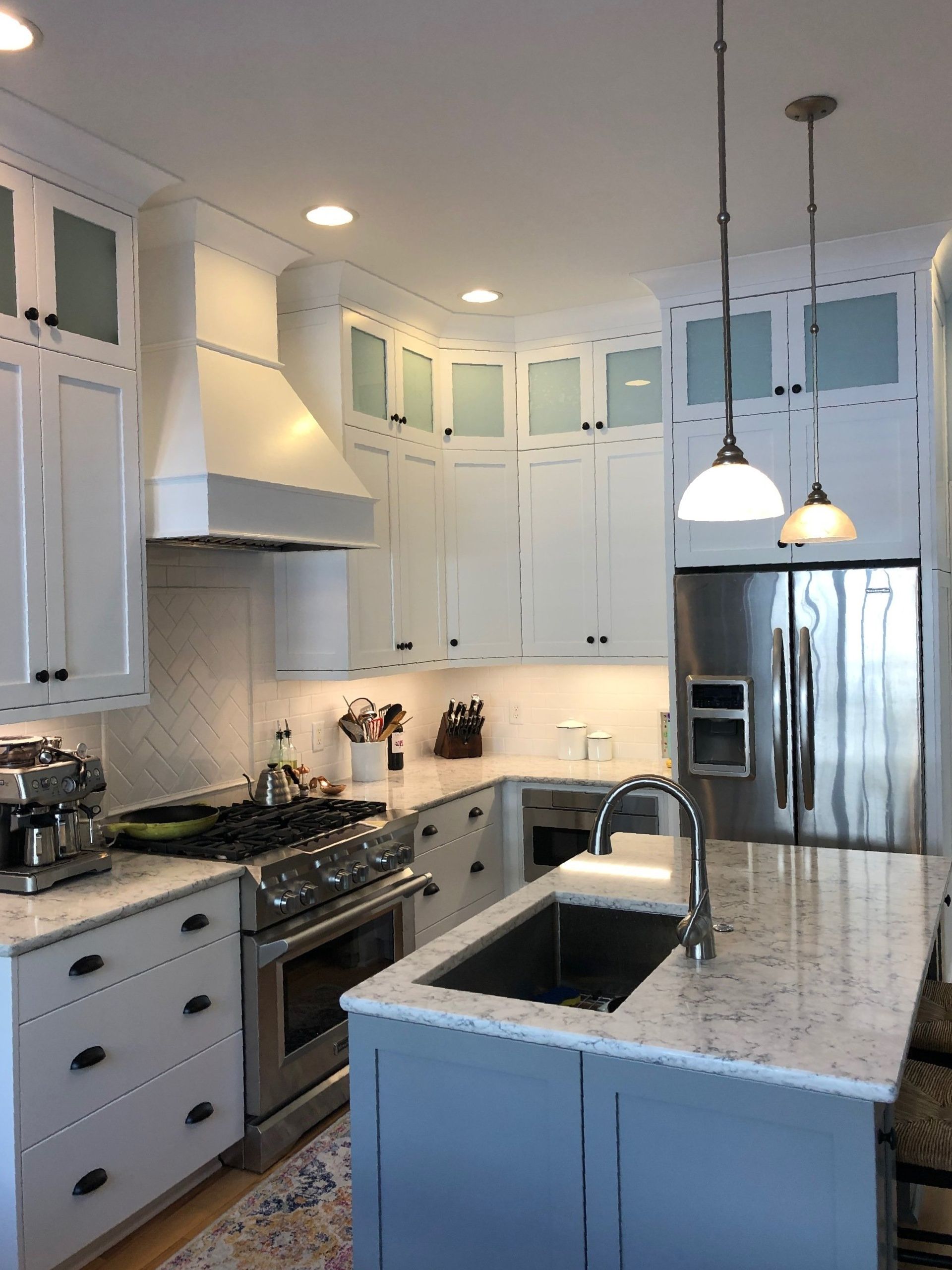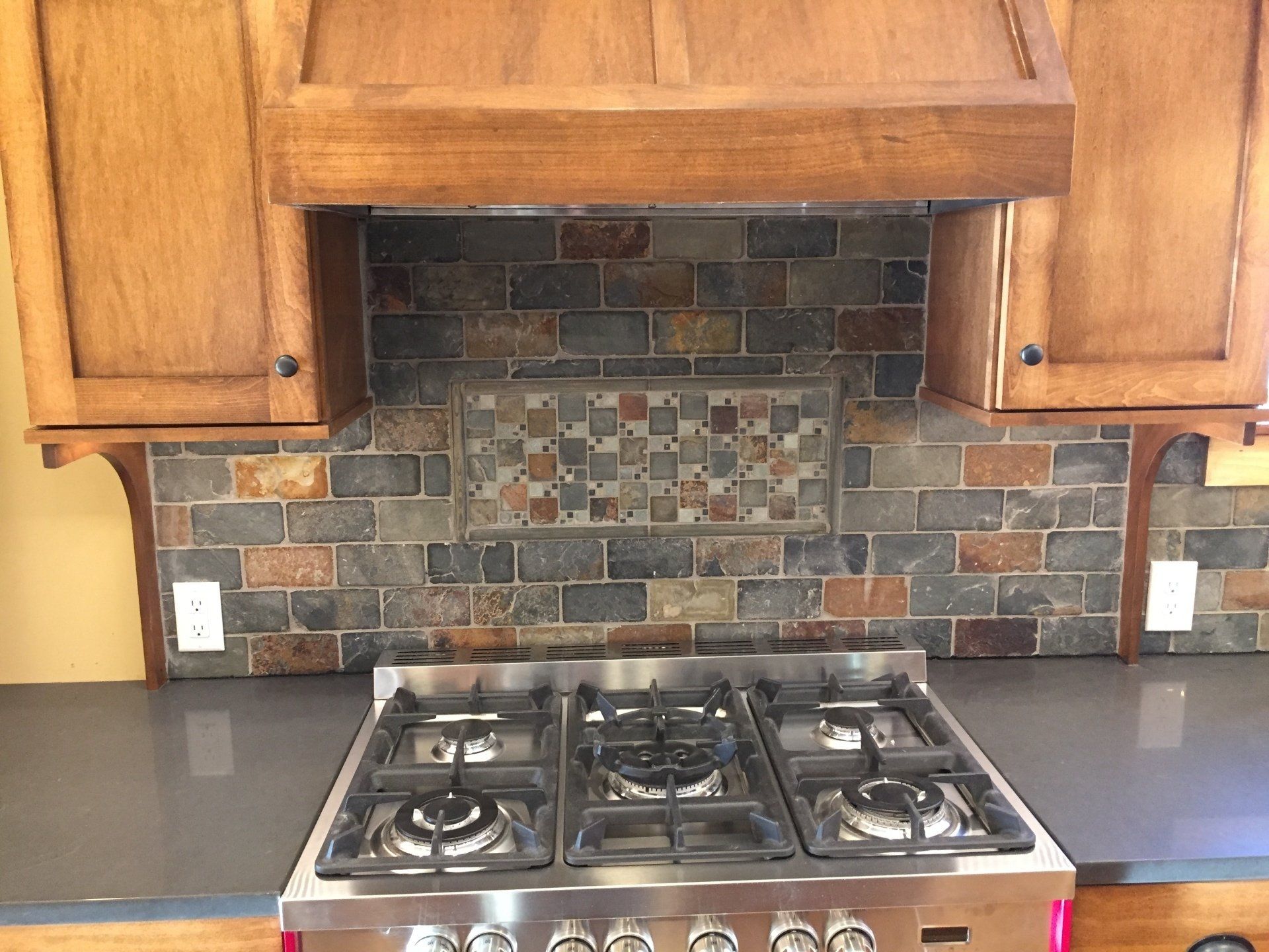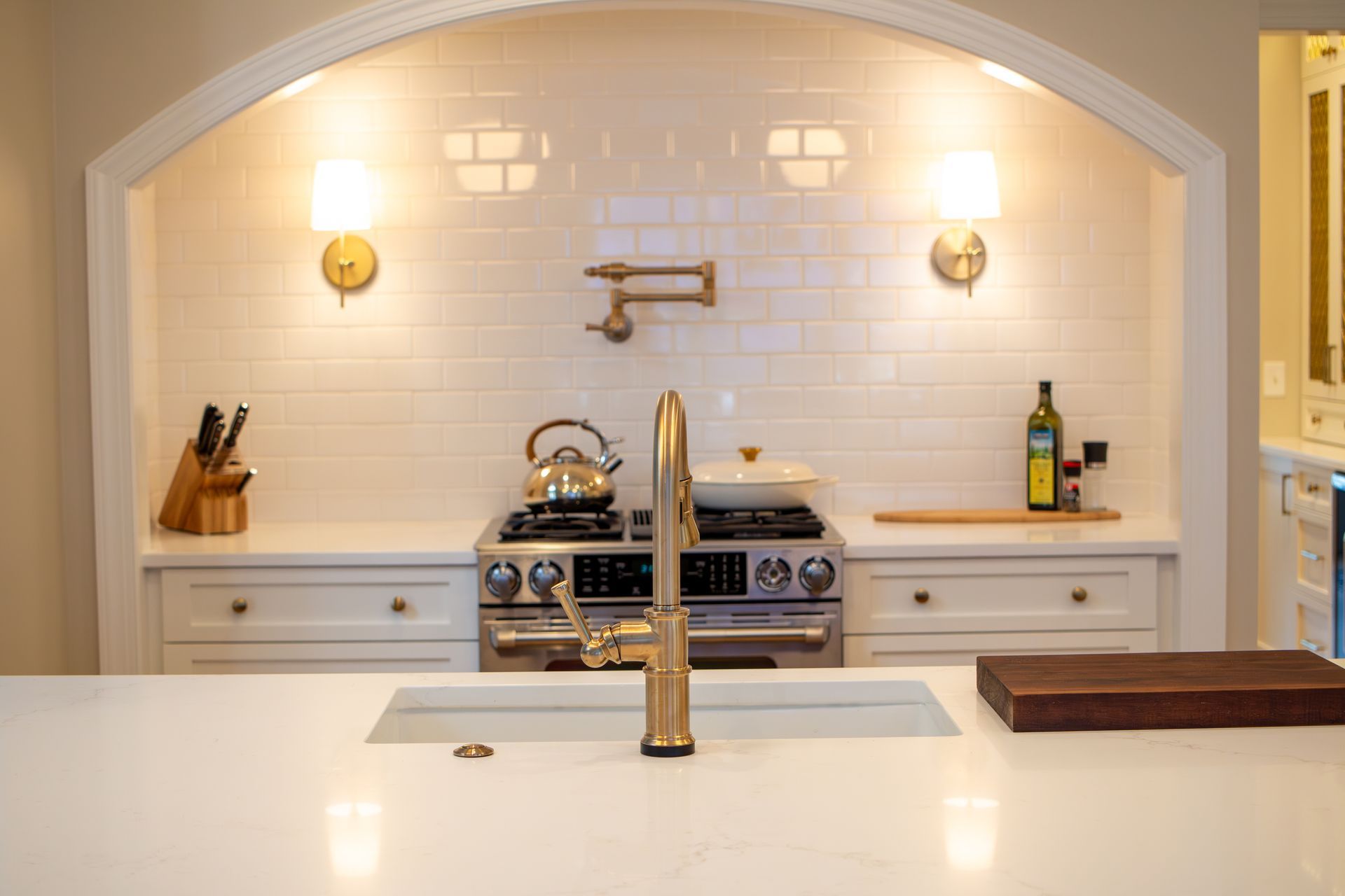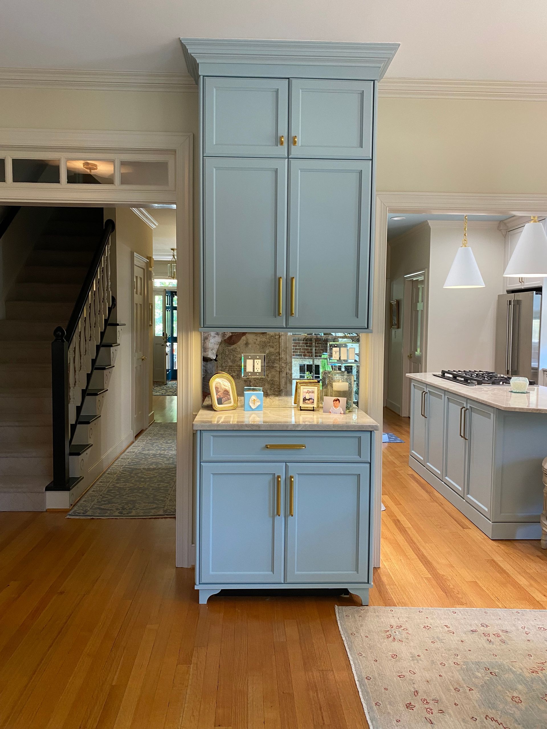 - Calcutta gold marble with gold leaf mosaic accent wall