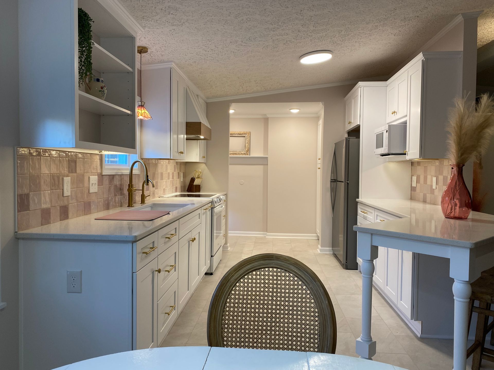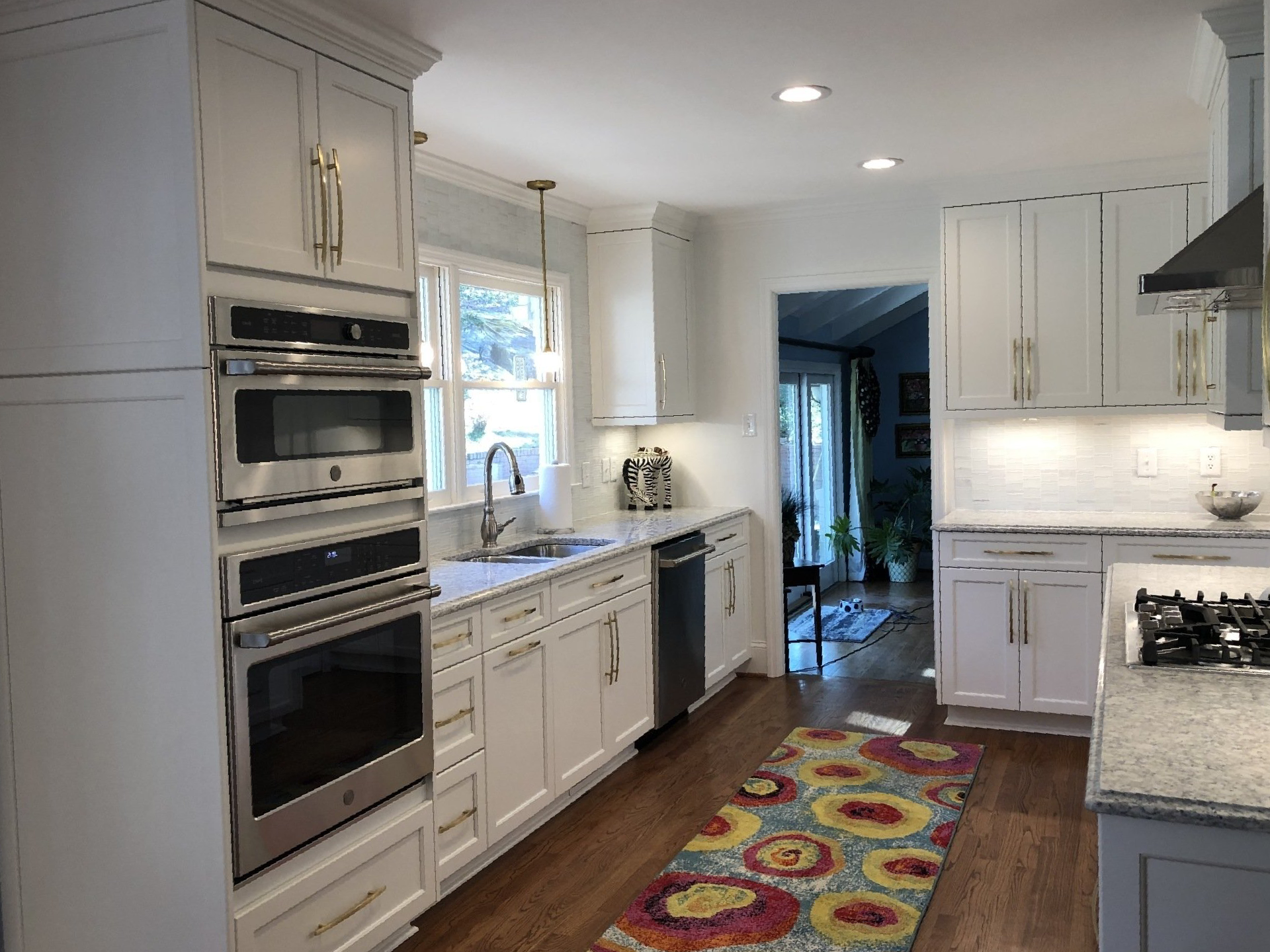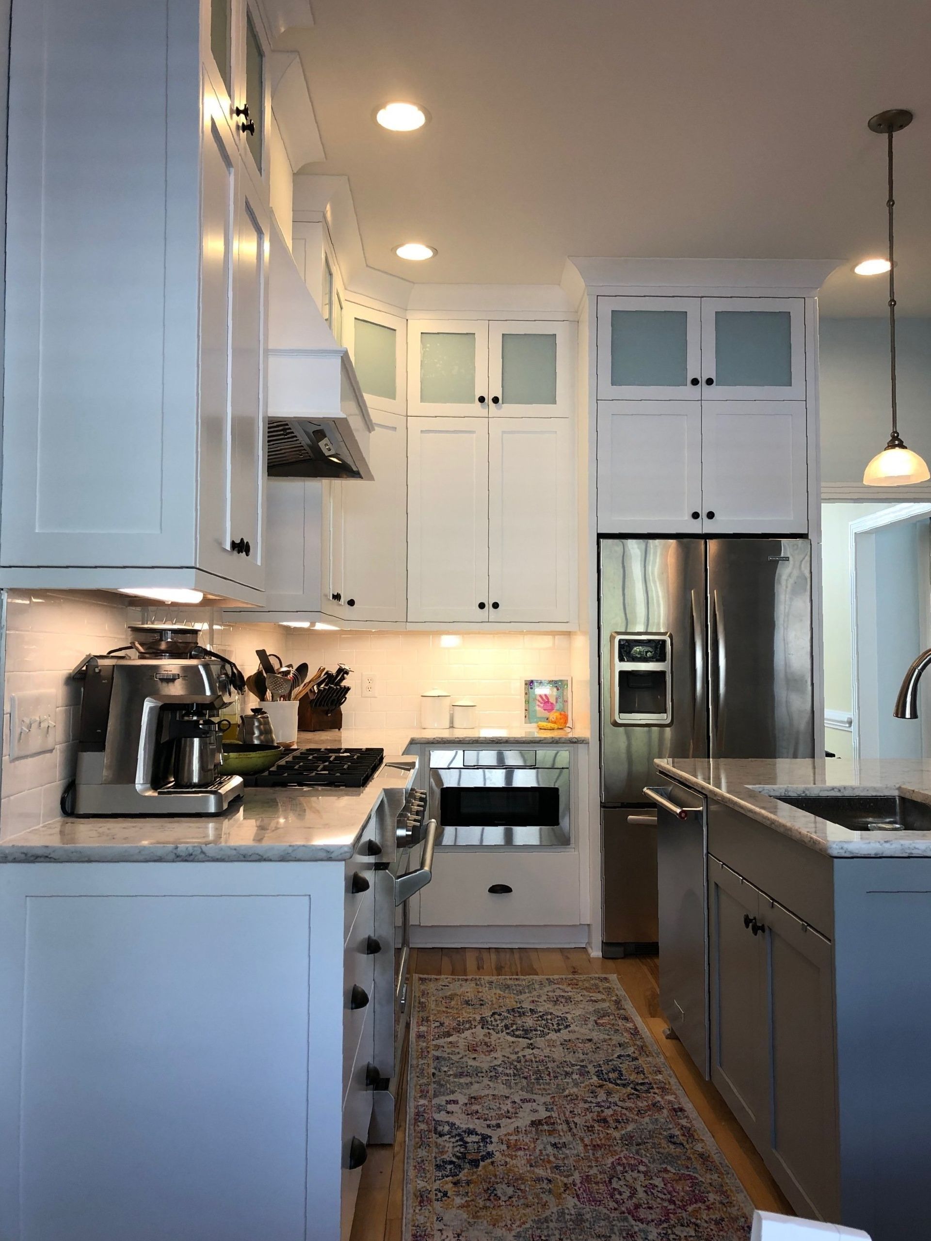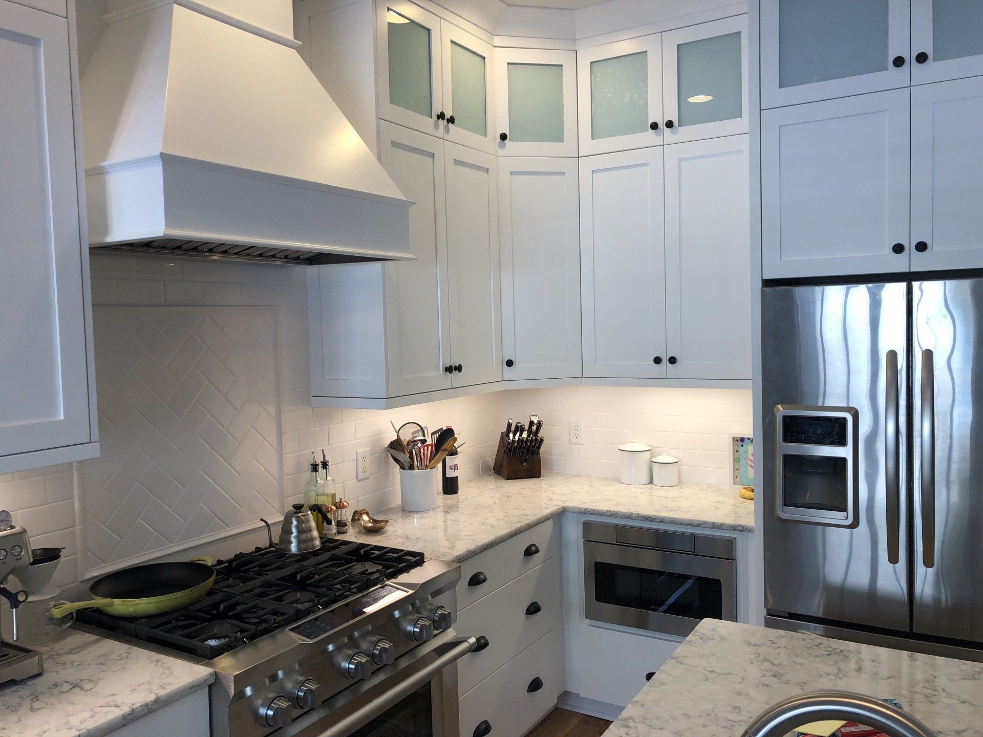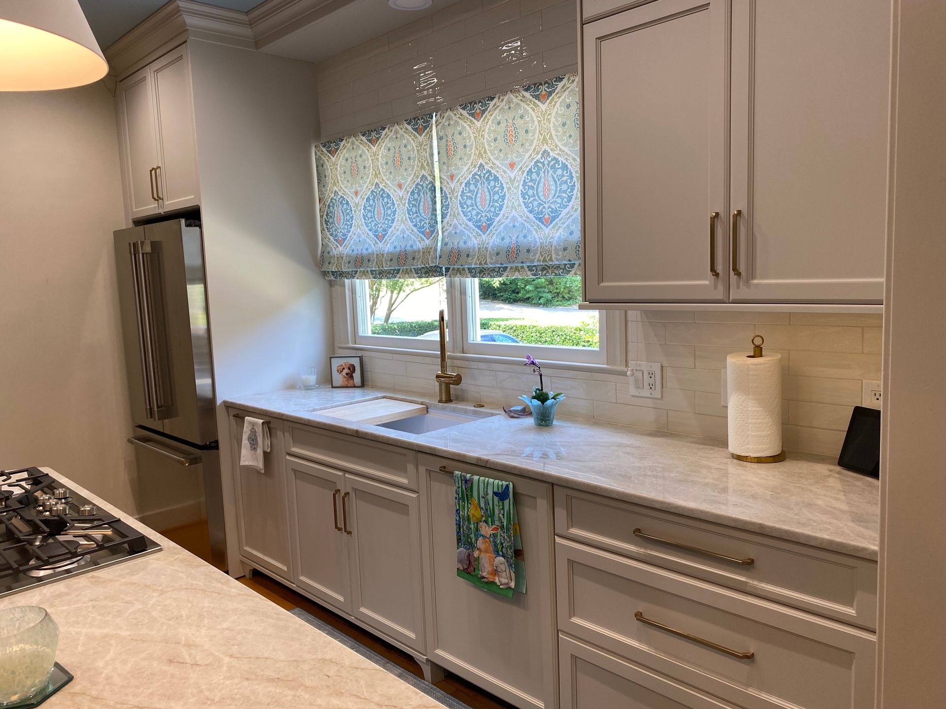 - Calcutta gold marble with gold leaf mosaic accent wall