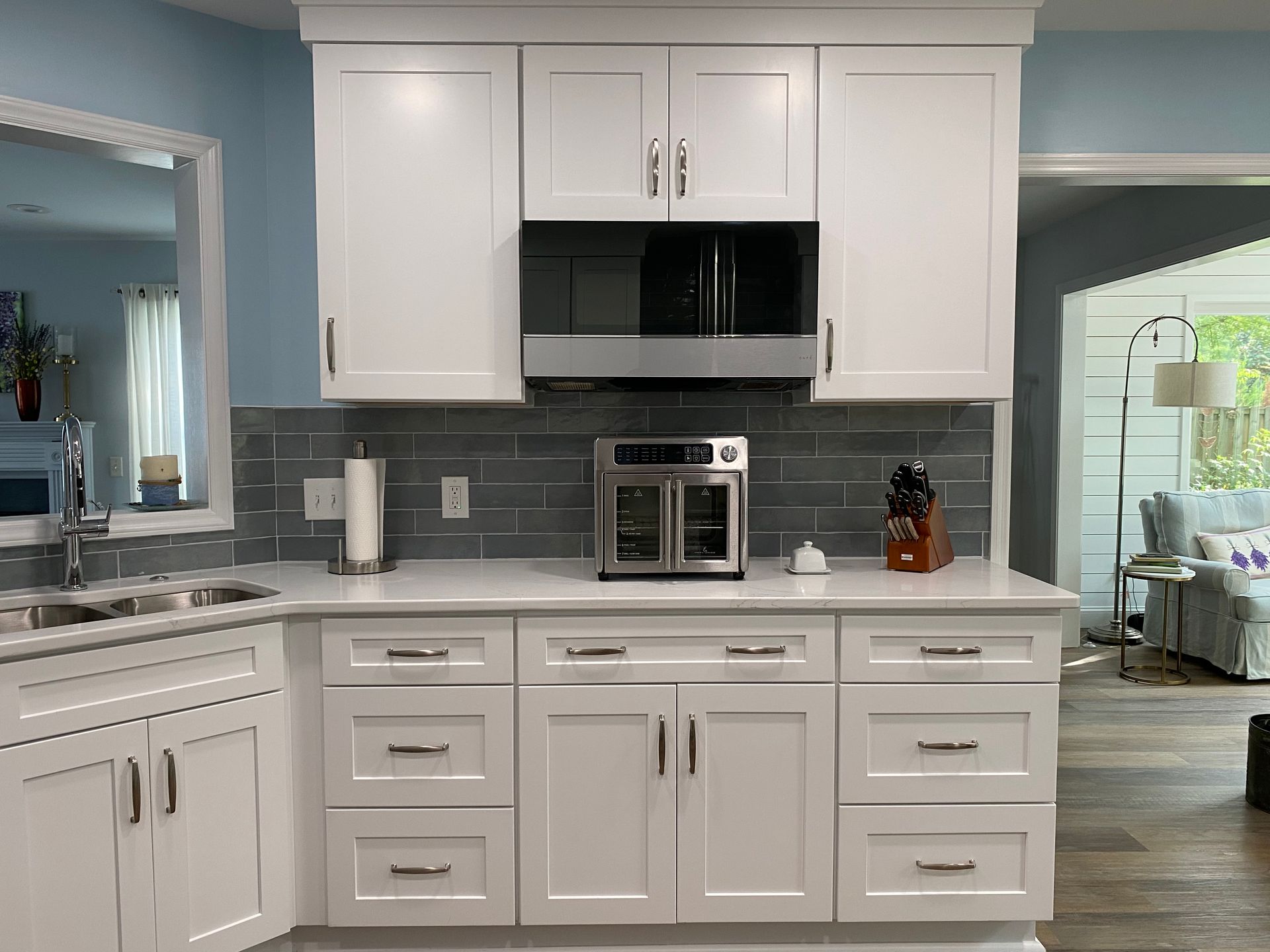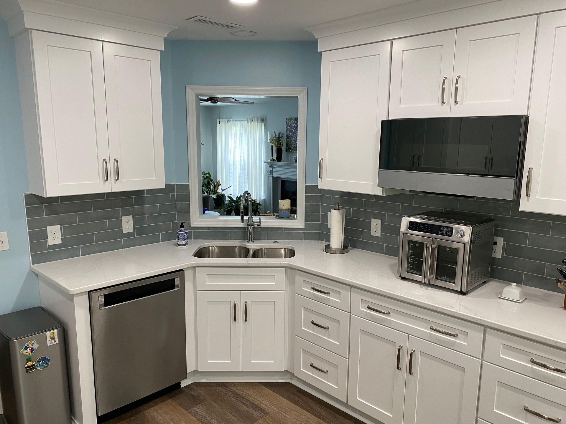 - Glass front shaker cabinets