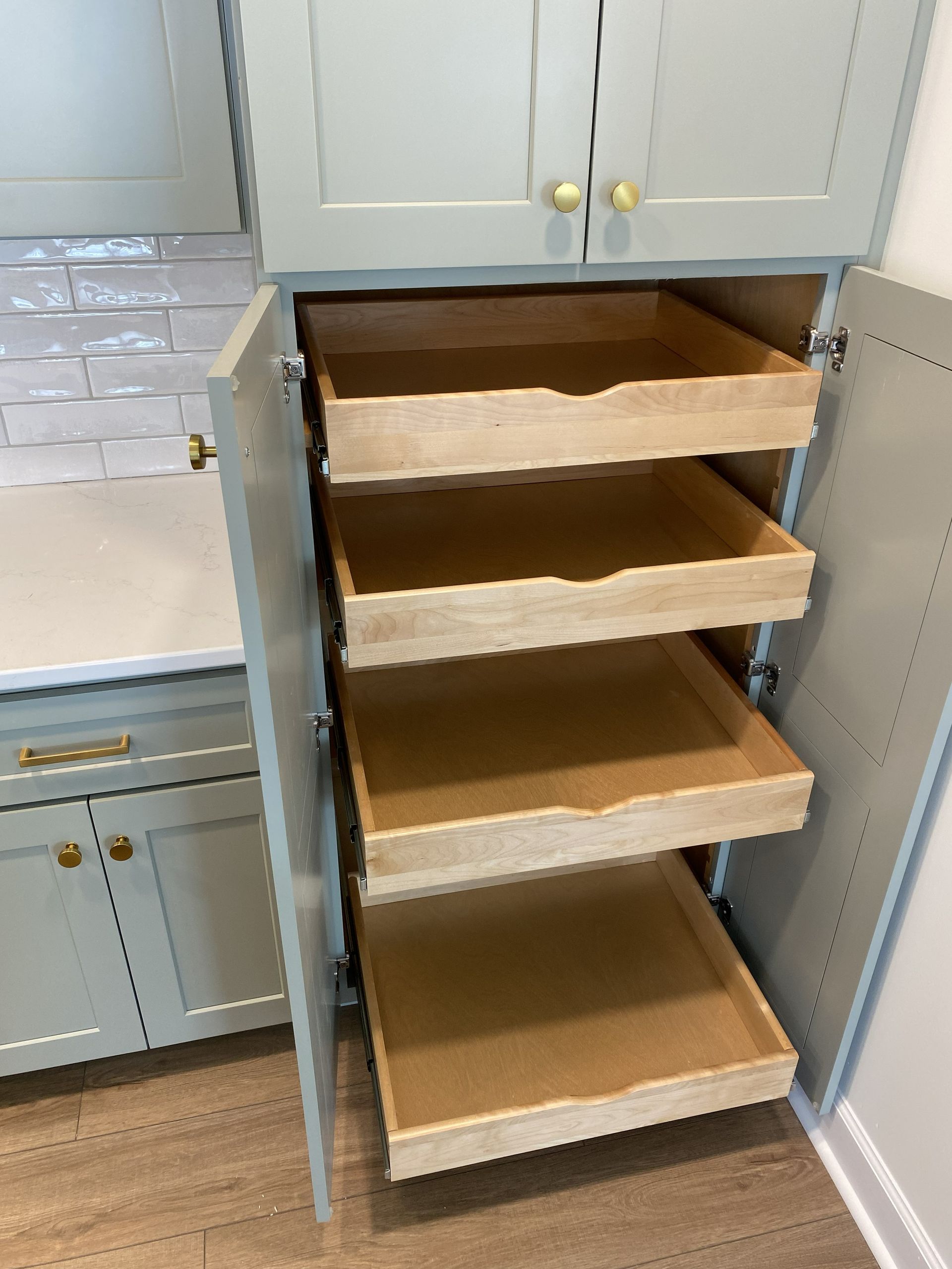 - Pantry cabinet with built-in pull-out sliding shelves
